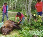 On two occasions we have been invited to reservations to teach: once to New Brunswick, Canada to teach an extended Mic Mac family, mostly how to brain tan deer skins - once to the Blackfeet Indian Reservation in Montana - to teach children how to make bows & arrows and some few adults how to brain tan.